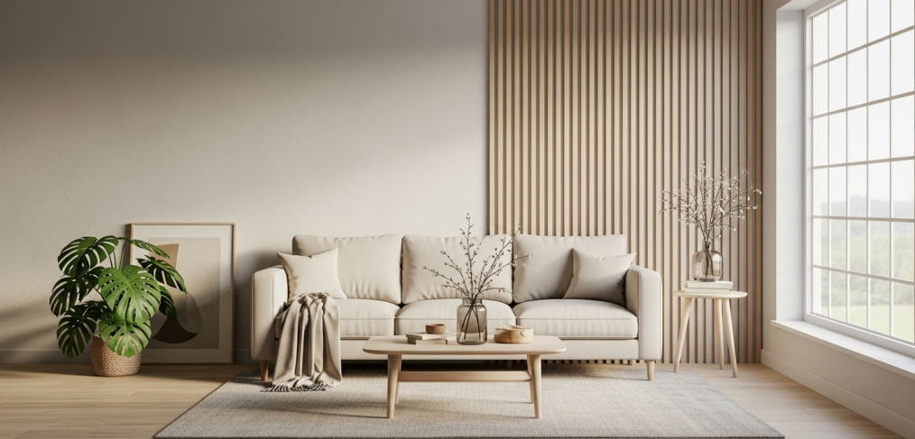 Tu punto de partida debe ser una base clara y relajante. Estos colores no solo aportan sofisticación y amplitud visual, sino que también actúan como el fondo perfecto para los elementos más característicos del estilo. Los colores de acento se usan con moderación, aportando toques de calidez y personalidad sin romper la armonía general.