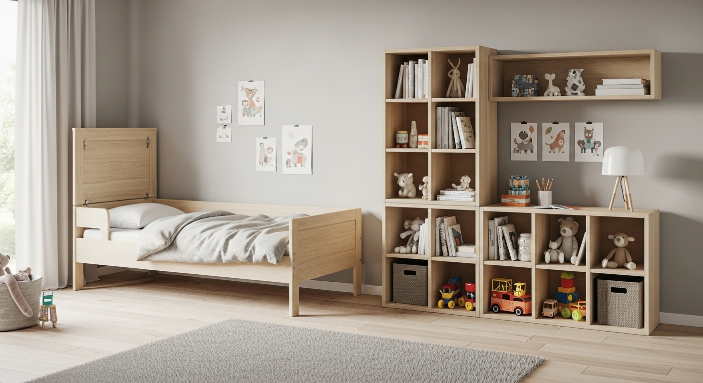 Las necesidades de almacenamiento de un niño cambian drásticamente con el tiempo. Pasan de necesitar grandes cajas para juguetes voluminosos a requerir estanterías para libros, espacio para material escolar o soluciones para organizar dispositivos electrónicos. Por ello, un sistema de almacenaje flexible es fundamental.
