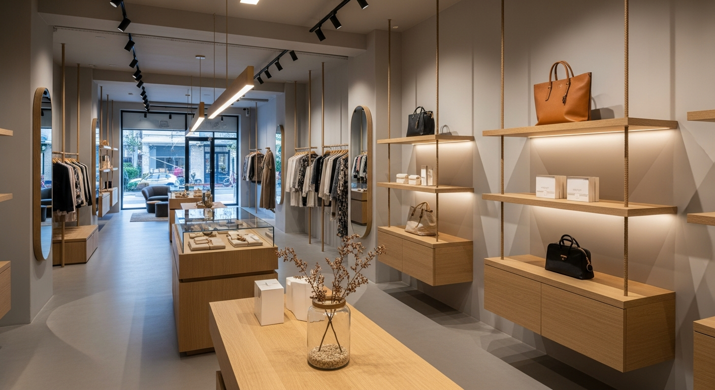 2. Iluminación de Trabajo o Funcional: Se concentra en áreas específicas donde se realizan tareas, como mostradores, probadores o zonas de caja. Debe ser clara y directa para facilitar la interacción y la toma de decisiones.