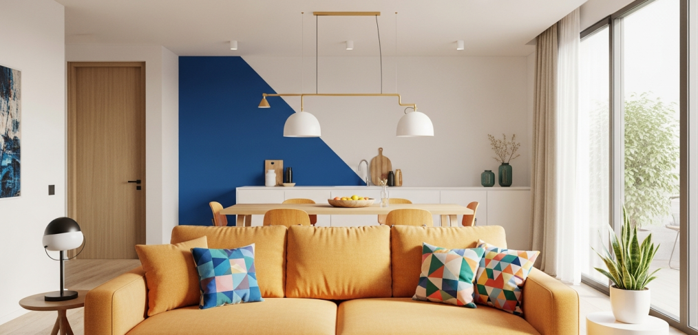 No necesariamente. El truco está en el equilibrio. En lugar de pintar las cuatro paredes, utiliza los colores vibrantes en una sola pared de acento, en accesorios o en piezas de mobiliario puntuales. Mantén una base neutra y luminosa (como blancos o beiges) en el resto del espacio para maximizar la sensación de amplitud. Una buena planificación de la iluminación también es clave para que el color no sature visualmente.