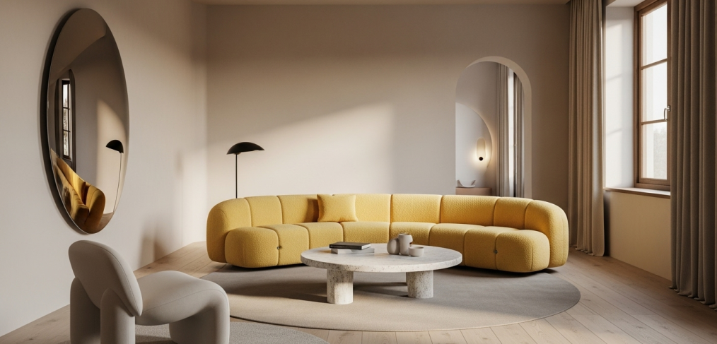 El futuro es curvo: La tendencia en sofás, mesas y espejos redondeados.