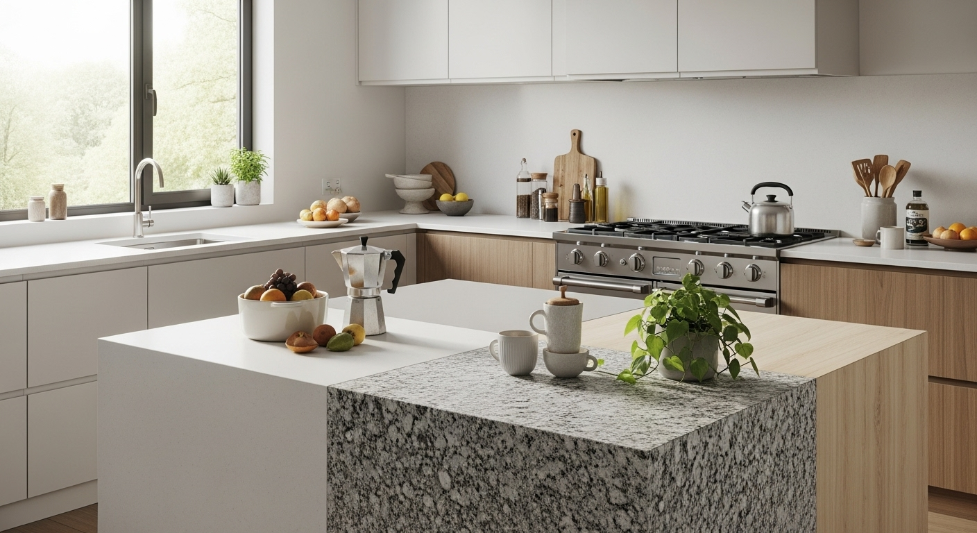 - Elige Granito si: Eres un apasionado de la cocina que valora la resistencia al calor por encima de todo. Es perfecto si buscas una pieza única, duradera y con el carácter irrepetible de la piedra natural.