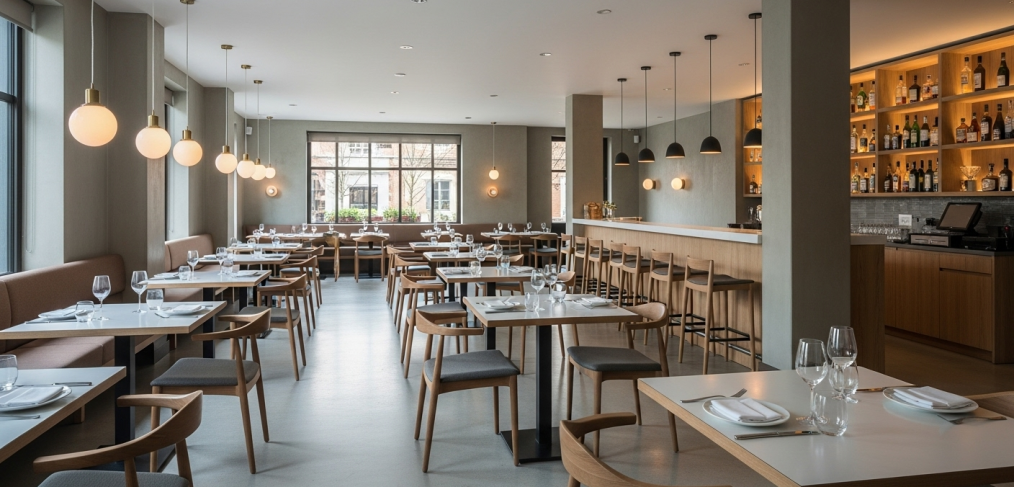 Más allá de la normativa, el diseño interior es lo que dará personalidad a tu restaurante y creará una experiencia memorable para tus clientes. Un buen diseño no es solo decoración; es estrategia. Debe alinear la identidad de tu marca con un ambiente funcional y acogedor.