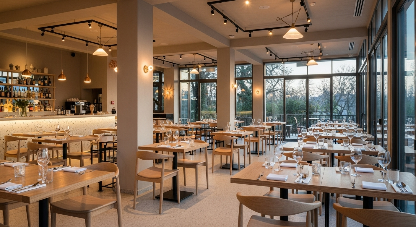 Más allá de la normativa, el diseño interior es lo que dará personalidad a tu restaurante y creará una experiencia memorable para tus clientes. Un buen diseño no es solo decoración; es estrategia. Debe alinear la identidad de tu marca con un ambiente funcional y acogedor.