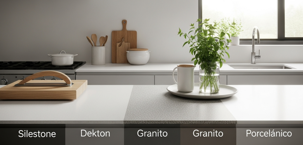 Encimeras de cocina: La gran batalla entre Silestone, Dekton, Granito y Porcelánico