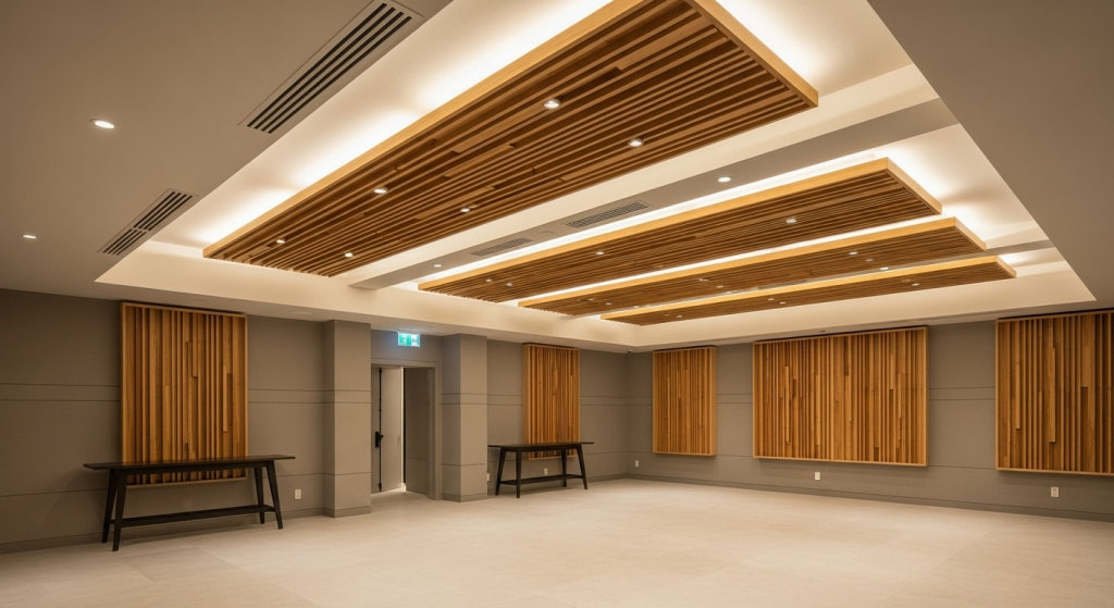 La buena noticia es que existe una amplia variedad de soluciones para instalar techos acústicos, adaptándose no solo a las necesidades técnicas sino también a la estética de tu negocio. La elección dependerá del nivel de absorción requerido, el diseño interior y, por supuesto, el presupuesto. Estas son algunas de las opciones más eficaces: